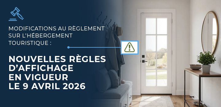 | Le ministère du Tourisme a récemment annoncé des modifications au Règlement sur l'hébergement touristique visant à favoriser une plus grande conformité dans le secteur. Certaines de ces mesures sont entrées en vigueur le 9 avril 2026. |